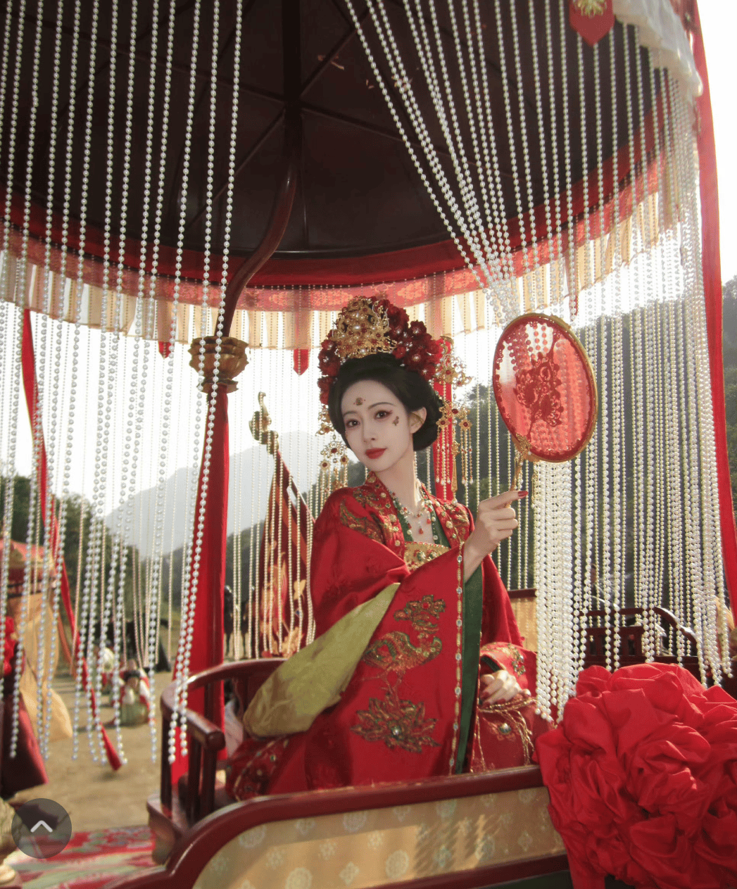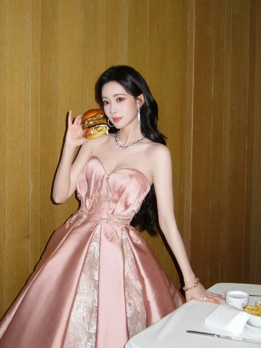 在红色抹胸裙的造型中,她曲线曼妙,小猫耳发型灵动可爱,为整体造型增添了几分俏皮与活泼;粉色抹胸裙则凸显出她纤细的身材,手拿汉堡时娇俏灵动的姿态,让人感受到她生活中的可爱一面。这些不同风格的古装造型,不仅展现了孟子义对各种古装的驾驭能力,更让观众看到了她多面的魅力。