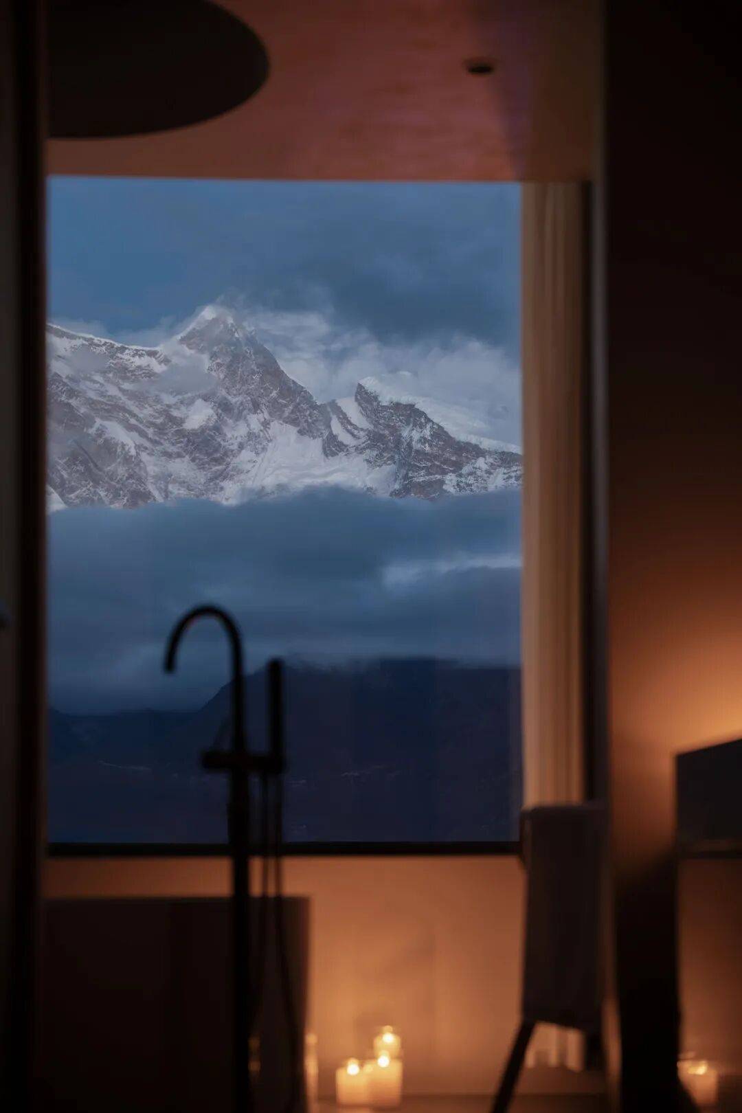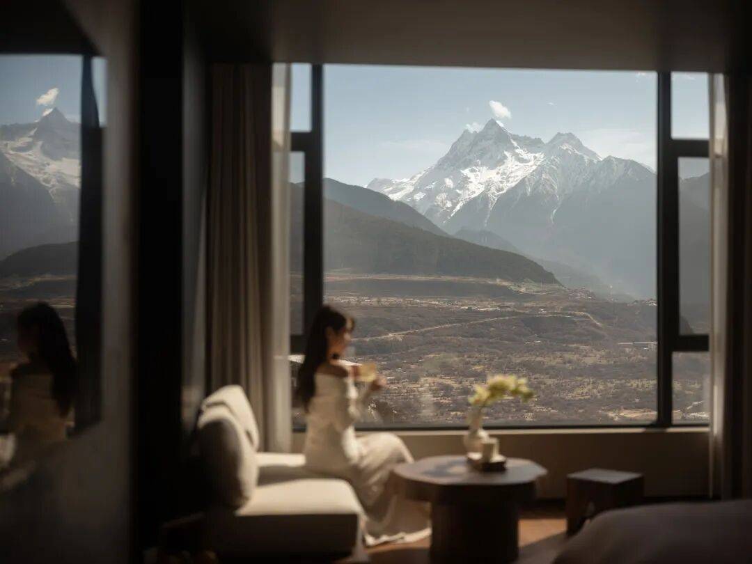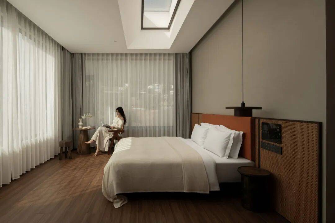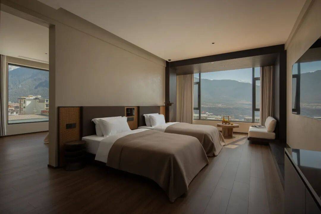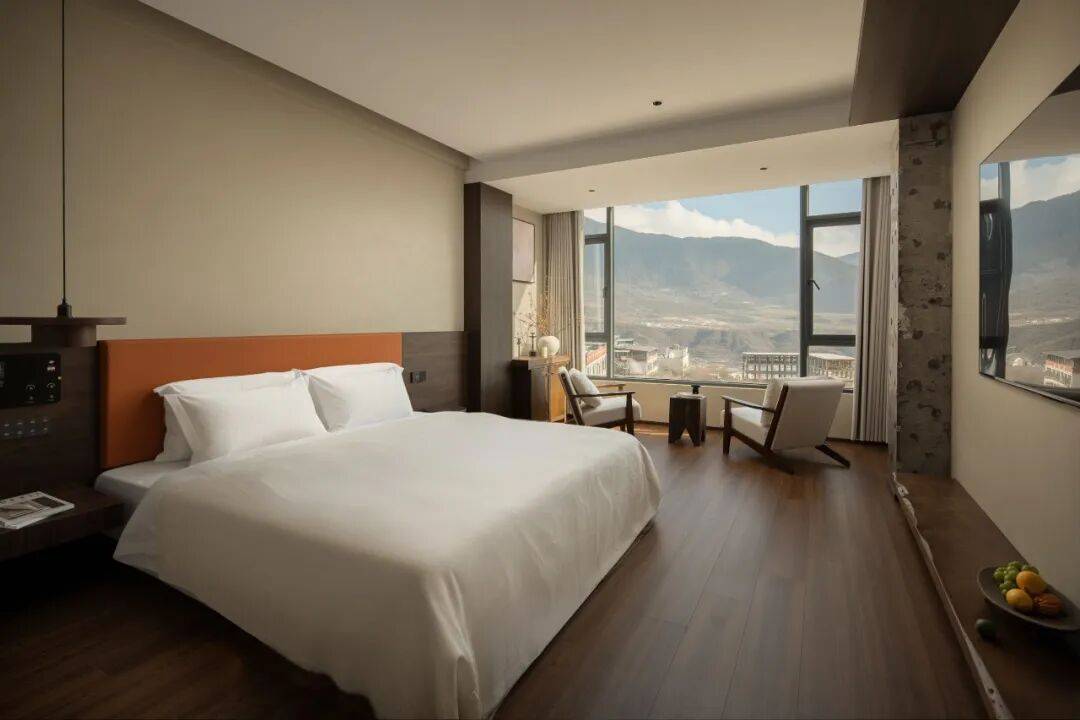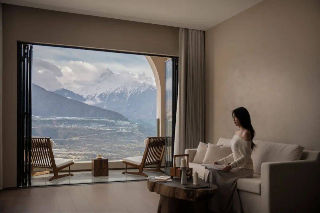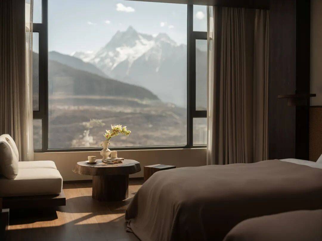 客房设计遵循“极简留白,视线聚焦”的原则。房型以江景和山景大床房为主,设计团队刻意减少了房间内部的装饰语言,大面积留白,目的是将人的视线引导至窗外。在窗台处理上,采用碳化木作为“框景”的材料,仿佛为窗外的南迦巴瓦或雅鲁藏布江定制了一个天然的画框。