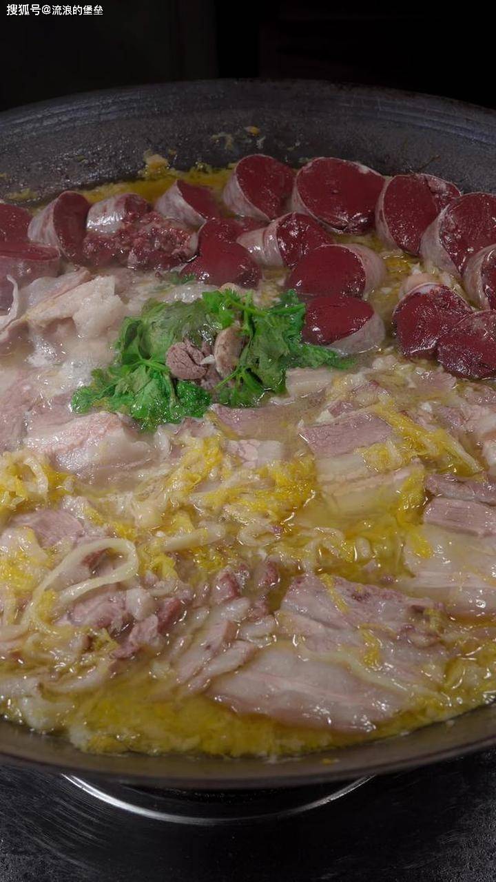 2、杀猪菜在东北简直太绝了,血肠、酸菜和肉,这是东北人最喜欢的一道菜,到了冬天的时候才是最火的时候,像是吃火锅一样,老喜欢了!