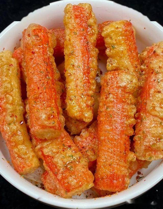 食材:蟹肉 棒1包,淀粉、孜然粉、辣椒粉、盐、食用油适量