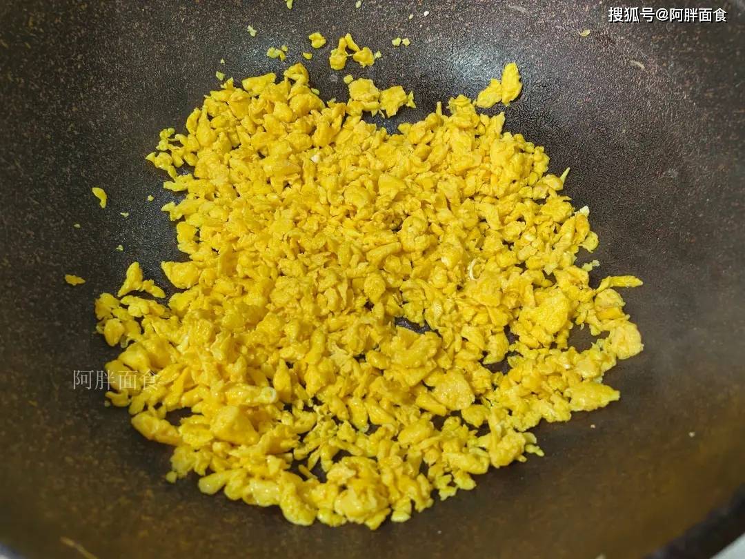 4、炒成鸡蛋花。稍微炒的焦香些,做饺子馅好吃。