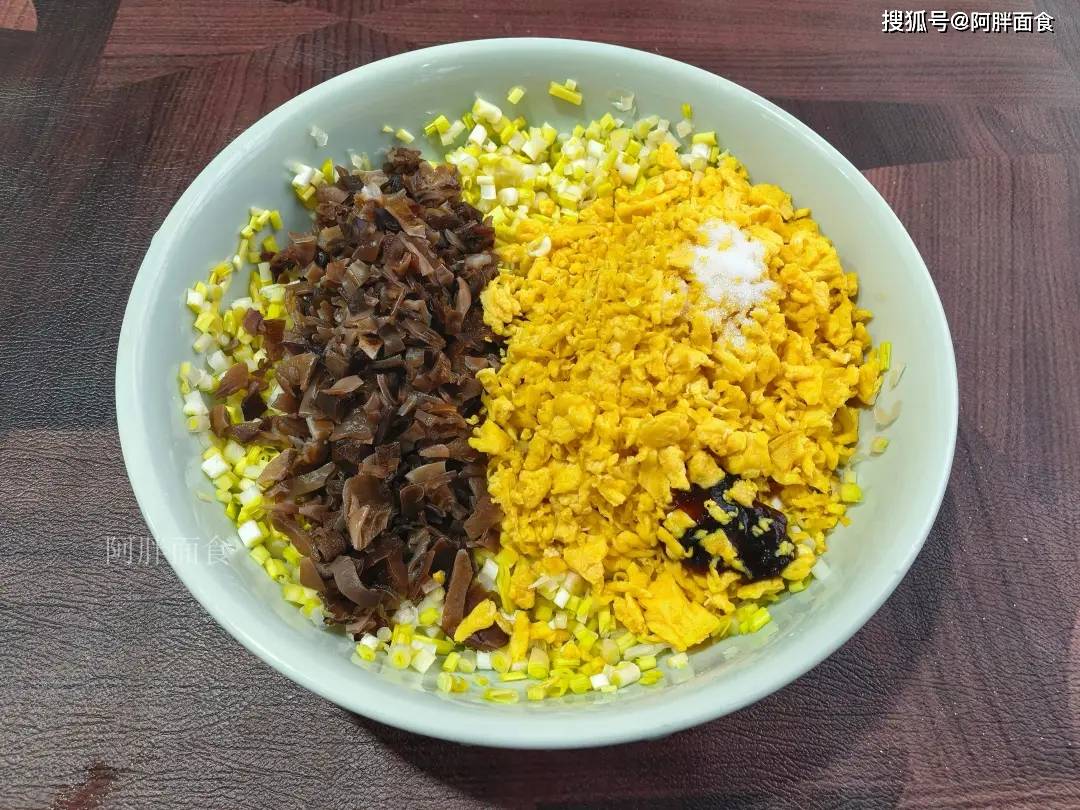 3、5个鸡蛋,加一点白胡椒粉去腥,稍微多加点盐,让鸡蛋花多带点咸味,蒜黄就少带点,这样可以防止饺子馅出水。