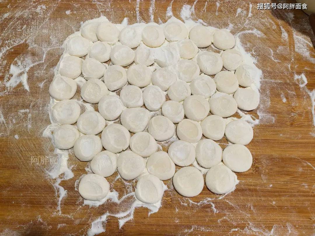 8、面团醒好,不用再揉,直接搓成粗细均匀的条,分成小剂子,然后撒干面粉防粘,擀成饺子皮即可。