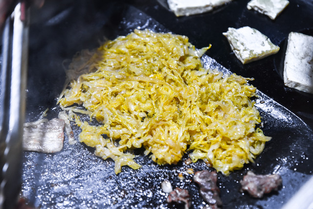 2. 美食体验:餐厅环境整洁,餐桌摆放有序。穿着短袖的服务人员,让你感受“冰火两重天”的魅力。明码标价,当地特色的延吉小黄牛、五花肉等是必点菜品,东北酸菜烤着吃也别有一番风味。再来2瓶哈尔滨啤酒,解解乏,大快朵颐。