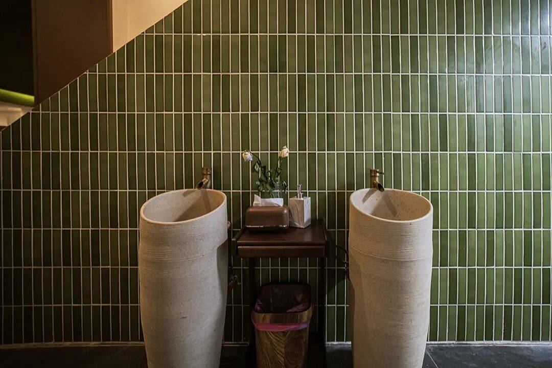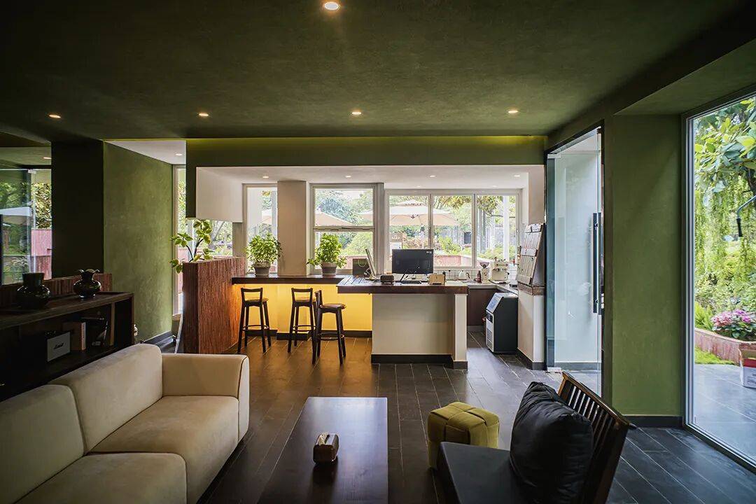 为了跳出传统民宿的风格惯性,我们选择了红色和绿色作为空间主色,既跳出了灰调、木色的同质化,也不会让色彩显得杂乱突兀。