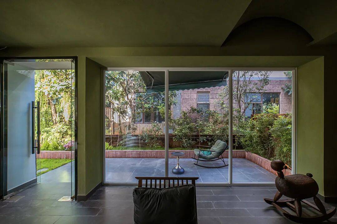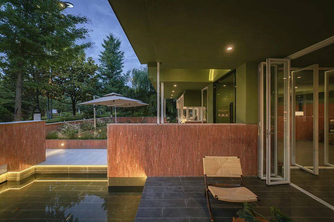 庭院中片墙的作用超越传统隔断:它将外部庭院的景深直接框引入室内,成为流动的视觉媒介,有效模糊建筑内外边界,以视线透引导感空间的丰富层次,使物理面积有限的公共区获得了视觉与心理上的双重通透感。