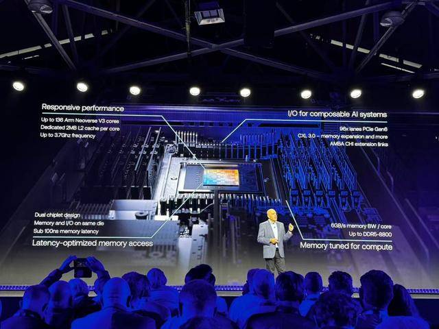 单颗Arm AGI CPU可集成多达136个Neoverse V3核心,无论是单核计算,还是系统级芯片、刀片服务器乃至整机机架,都能提供稳定的计算能力。而且每个核心拥有6GB/s内存带宽,访问延迟低于100 ns,为大模型训练和多线程AI任务提供稳定、高效的算力支撑。