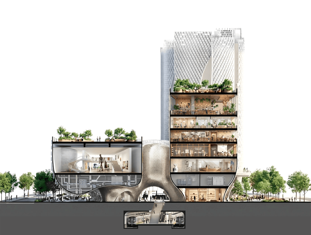 一个宏大的天窗将自然光引入公共广场,这里被构想为“艺术论坛”,全天24小时向公众开放,市民与访客可自由穿行与停留。艺术作品、临时装置与公共活动将在此激活空间,使日常的城市流动转化为文化体验。