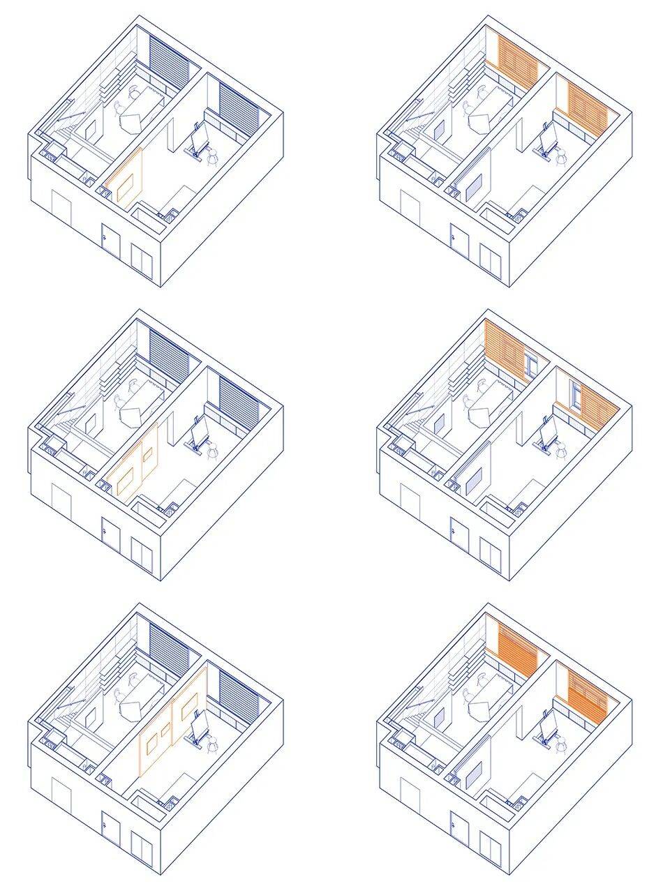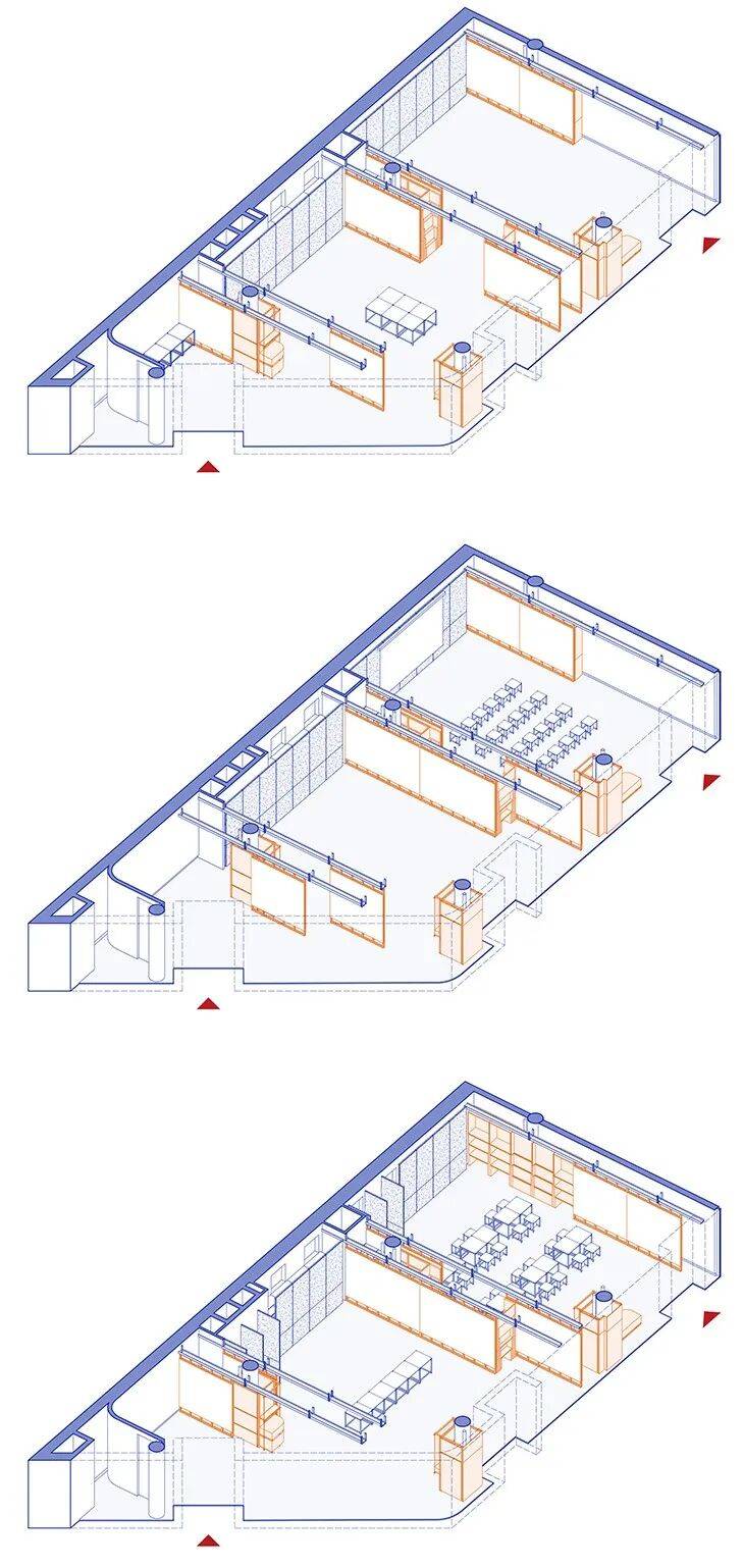 ▲移动展墙系统+ 窗系统分析图 © 即作建筑 MINOR lab