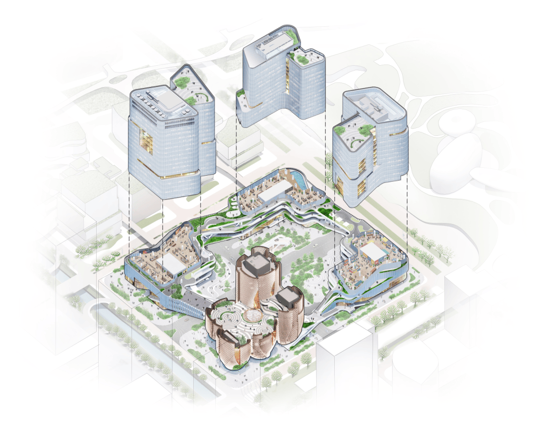 城市角色:以小尺度、分布式空间网络激活社区公共生活,将商业与住宅空间转化为社区文化资产,回应“存量时代”下城市更新的精细化需求。