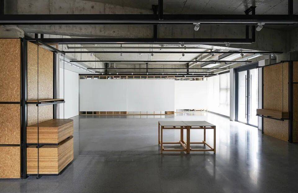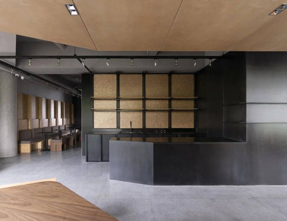 材料选择:水磨石、热轧钢板、麦秸板、桦木多层板等,通过材质自身的表达(如工业痕迹、温暖肌理)构建空间叙事。例如,麦秸板堆叠形成展示体量,热轧钢板保留生产痕迹,展现“平实而克制”的基调。