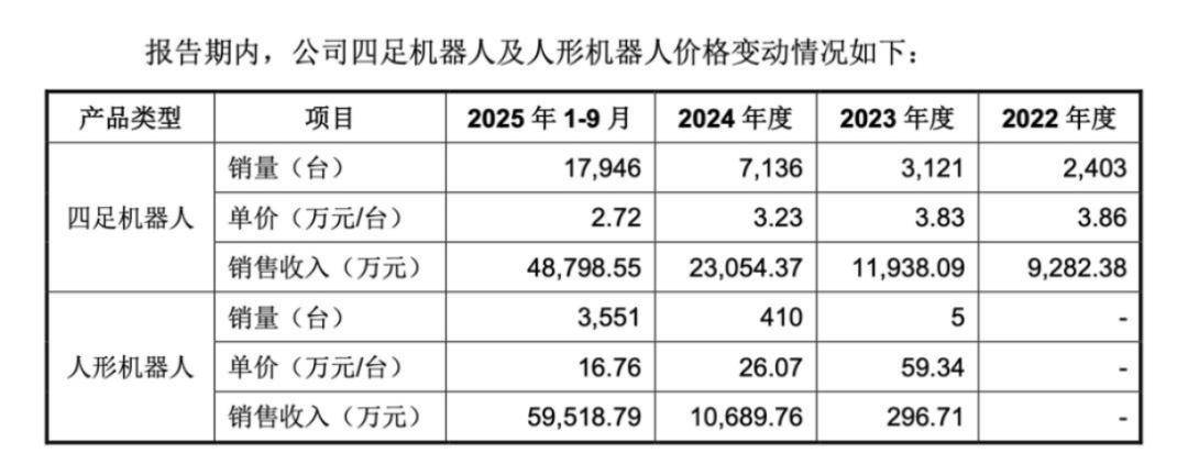 自2022年以来,四足机器人销量合计超30000台;2024 年,人形机器人仅销售410台,到了2025年,宇树纯人形机器人的累计出货量预计将超过5500台。