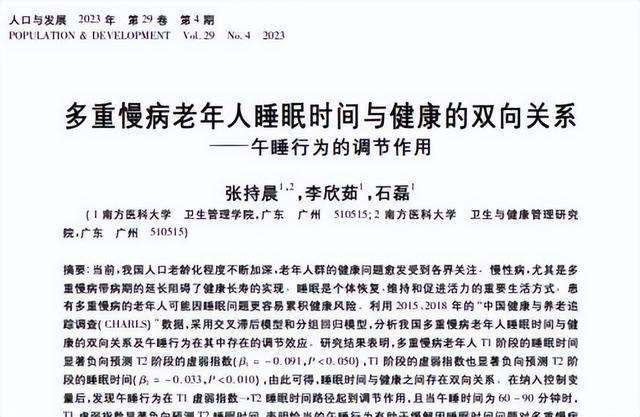 [1]张持晨.多重慢病老年人睡眠时间与健康的双向关系——午睡行为的调节作用, 人口与发展, 2023-07-29