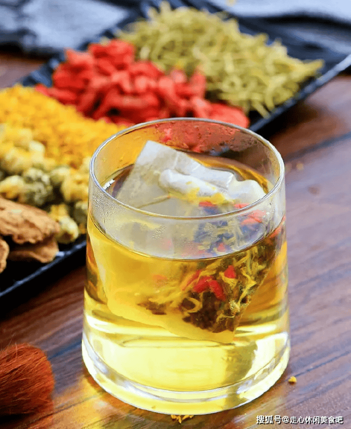 养身点:菊花清肝明目,决明子润肠通便,枸杞滋补肝肾。春天肝火旺,容易眼睛干涩、口苦咽干、长痘痘,这款茶就是最好的“灭火器”。