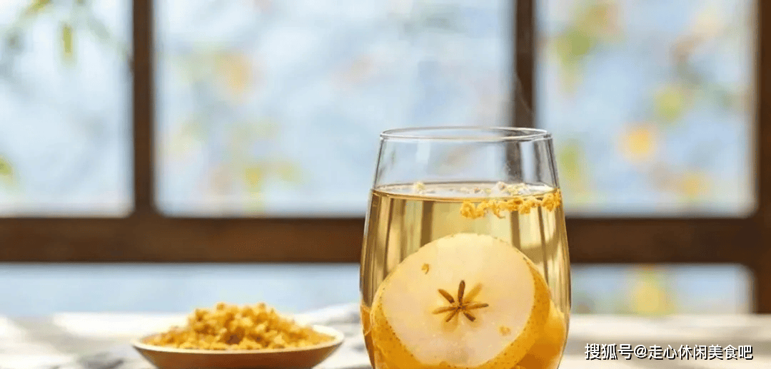 养身点:雪梨润肺生津,桂花化痰止咳。春季风大干燥,容易口干舌燥、喉咙干痒,这款饮品就是最好的“润喉糖”。