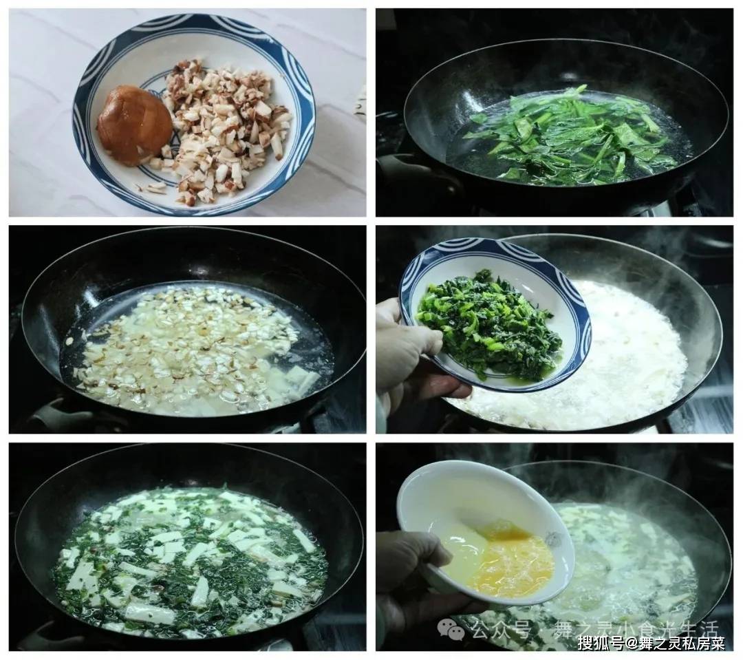 2. 分层煮制:先煮香菇碎与豆腐丁(如图片6中玻璃杯的纯净感,象征汤底清淡),再加入荠菜。