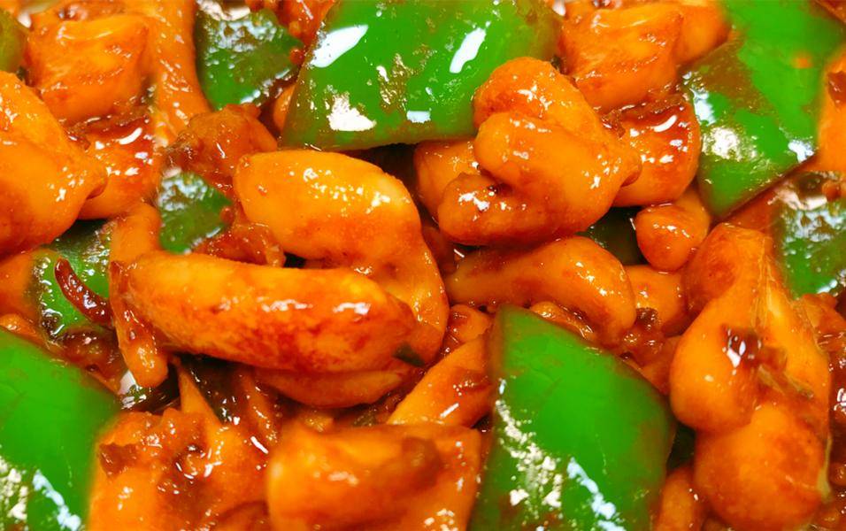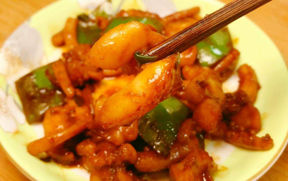 刚出锅的青椒炒八爪鱼,那香味真的绝了,八爪鱼裹着淡淡的酱油香,咬一口,脆嫩弹牙,一点都不柴,青椒的鲜辣刚好中和了八爪鱼的鲜味,每一口都超有嚼劲,配米饭真的能多吃两碗!