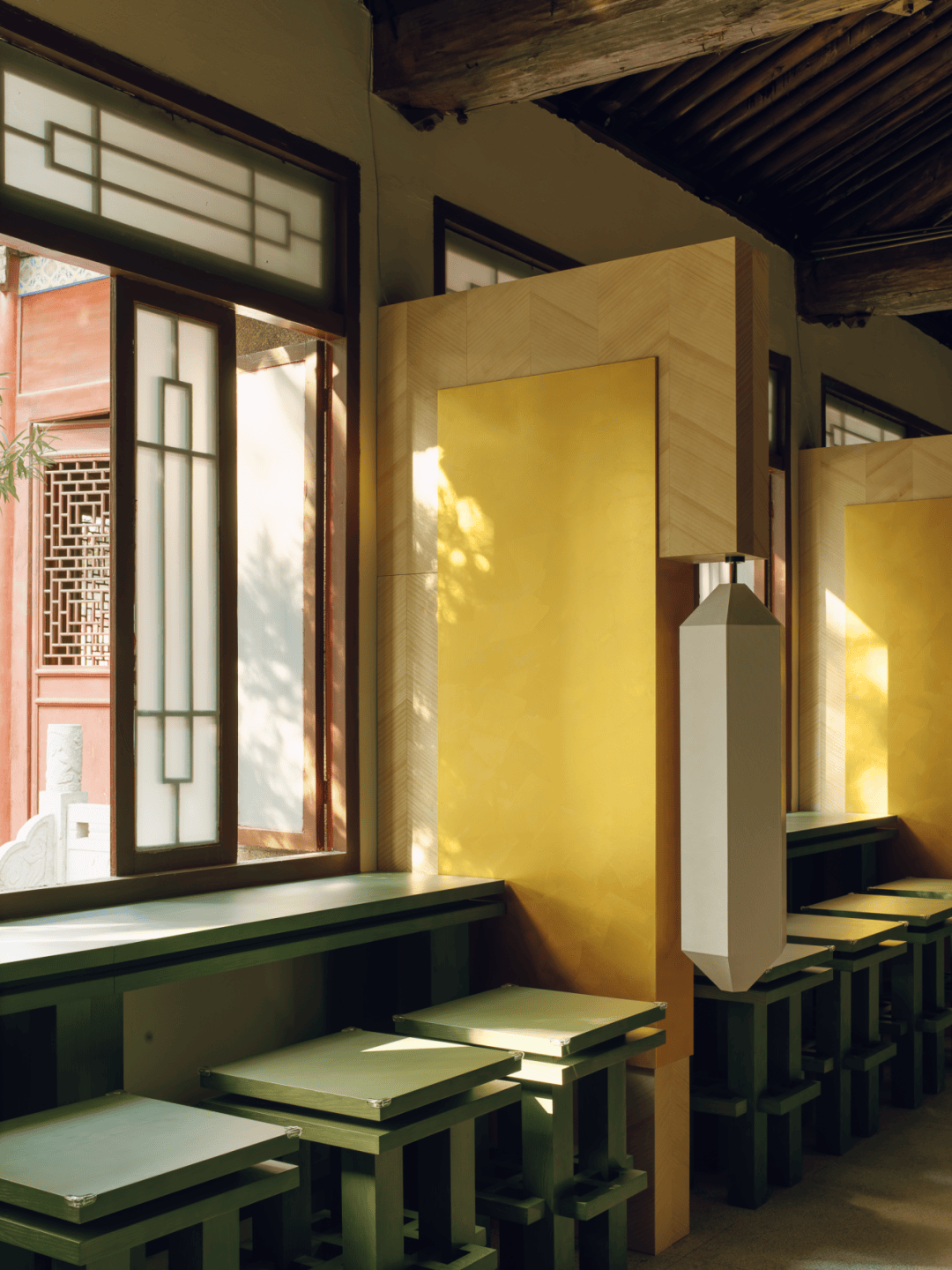 来碑咖啡位于西安碑林博物馆核心区,嵌入一座传统梁柱结构古建之中,是集游客休憩、文创售卖、拓印体验于一体的复合型文化空间。设计以古建原真性保护为核心准则,全程遵循“最小干预”原则。