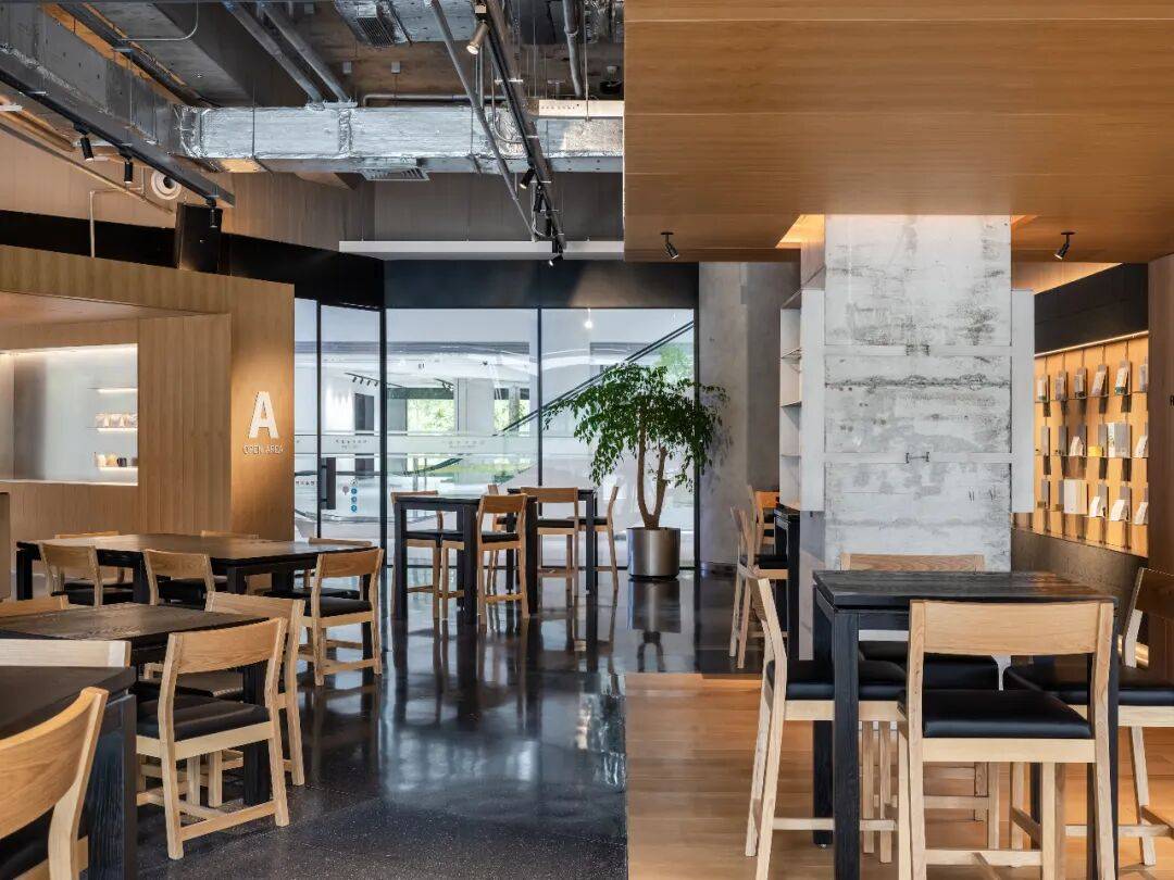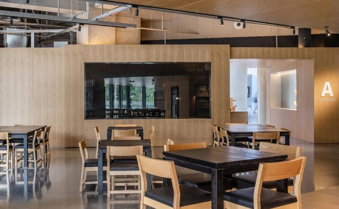 开放的A区,所承载的功能更为多元,平时,这里是与B区相同的办公、学习属性,仅有分贝环境的区分;而当有会议举行,或者科学家进行科研分享,这里则切换到路演模式,具备演示、聚集等功能,场景的切换也能够增加空间使用率。