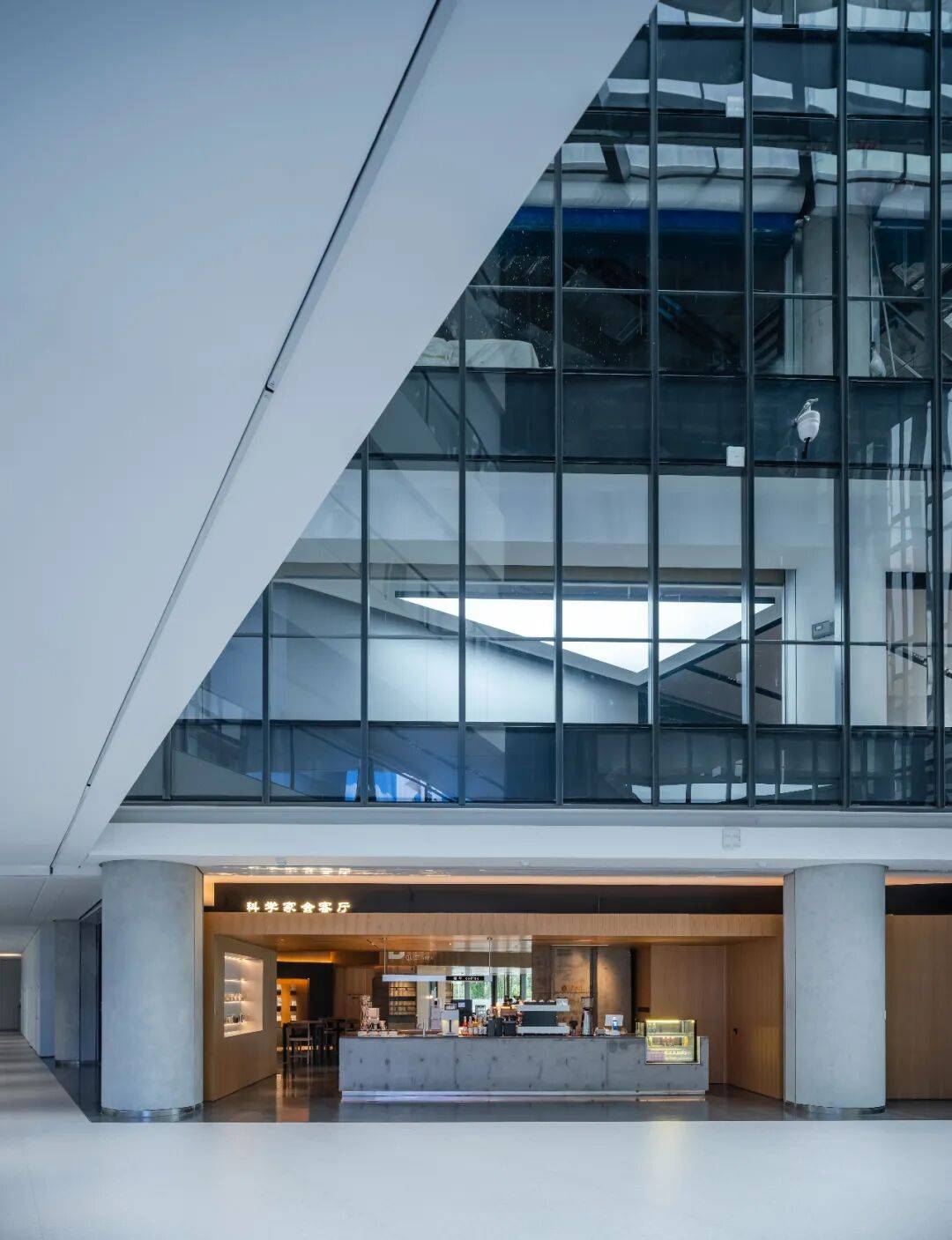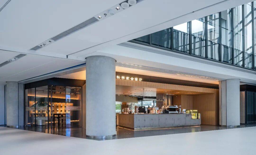 科学家会客厅位于北京怀柔区的一栋企业办公楼内,是一个集咖啡、办公、学习、交流于一体的多功能空间。项目由郭莘空间设计工作室负责室内设计。该办公楼的主要群体是科技研究人员,项目的主要功能诉求是提供咖啡饮品和一个学习、交流的场所,其中学习交流的功能比重更大。