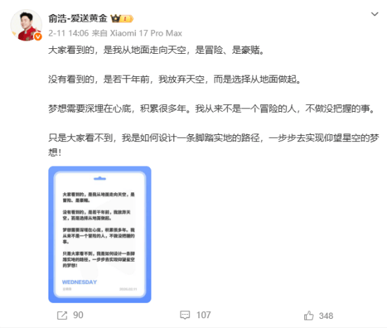从扫地到发射卫星,这一跃的结局尚未揭晓。不过,俞浩从不怀疑自己。他曾在多个场合提起,自己的人生几乎没有经历过大的失败。高中时他要求自己每周写下一个专利构想,在清华被导师评价为“违反常理”的飞机设计最终拿下一等奖。这些经历让他相信,创业也是一道可以被精密计算的数学题。