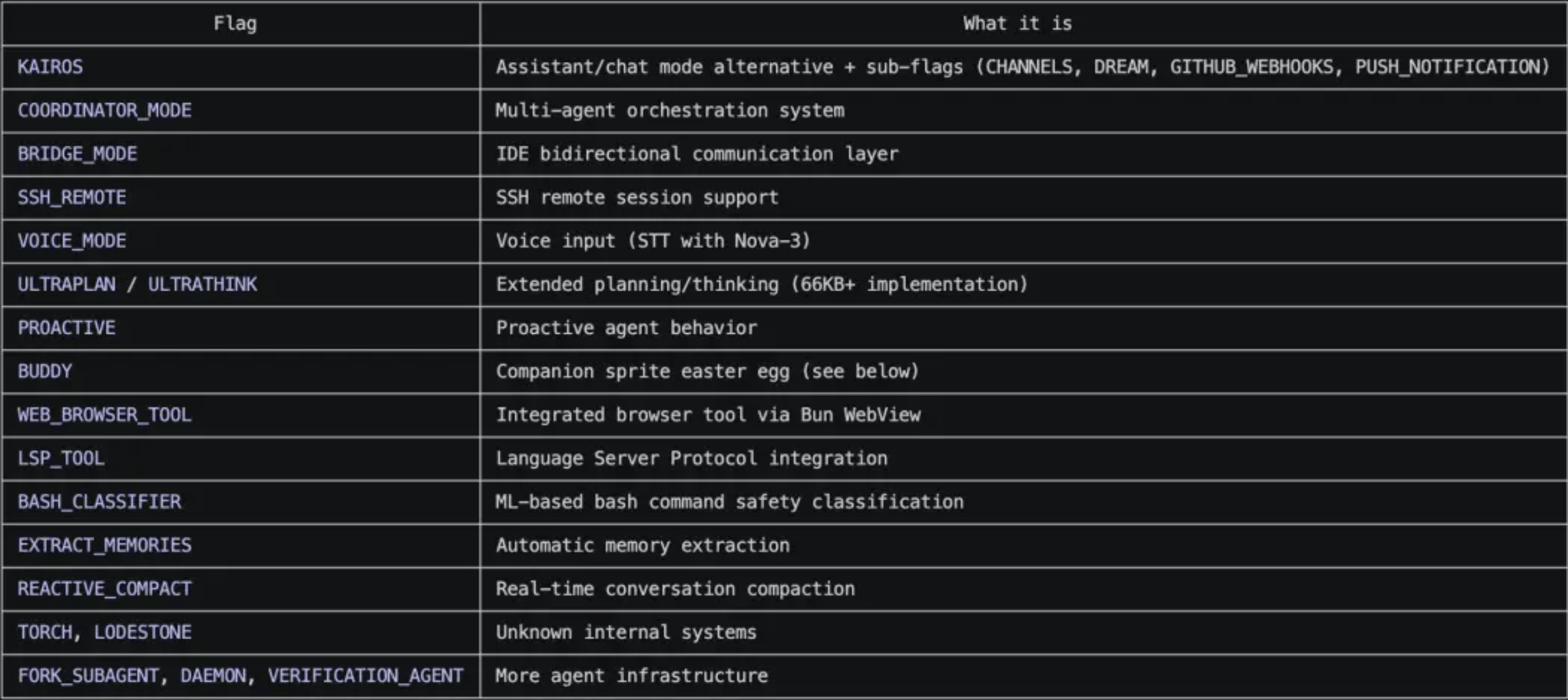 UndercoverMode(卧底模式):当Anthropic员工在公共仓库操作时自动激活,抹除提交记录中的AI痕迹,且无法手动关闭。