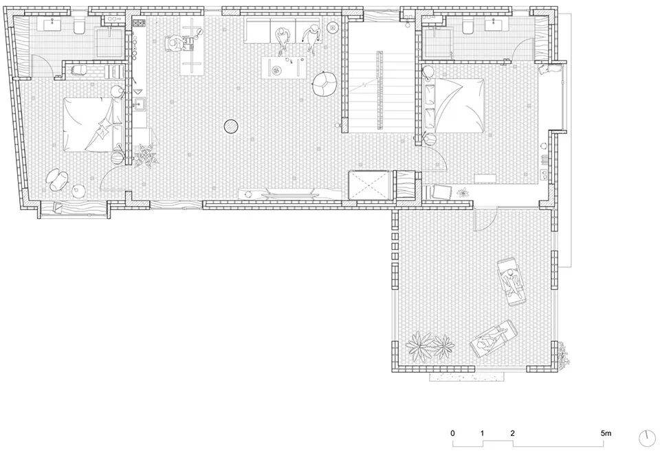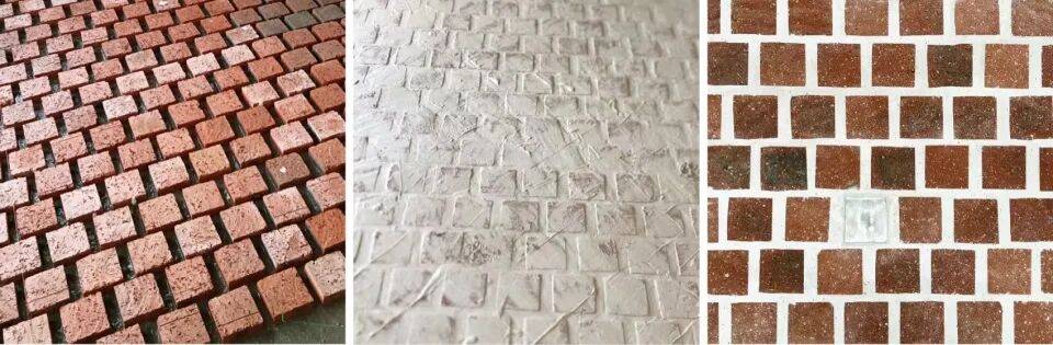砖作为项目使用的主要材料,贴近人手掌的尺寸,大家都可以单手举起。从砖到墙到空间,它既是组成空间的材料单元,也是建造传统和工艺的见证者。为了尽可能减少砍砖,在施工前设计团队做了全屋砖的排列设计。