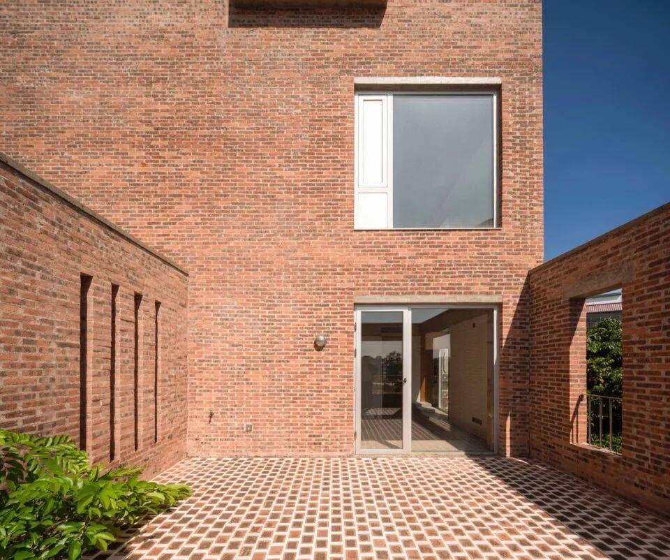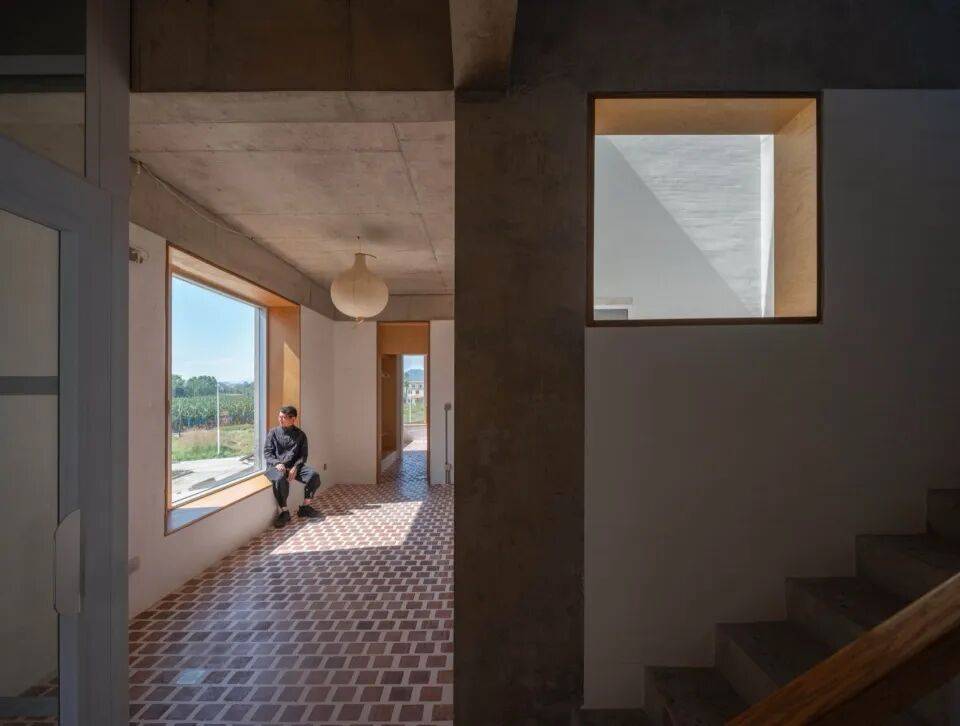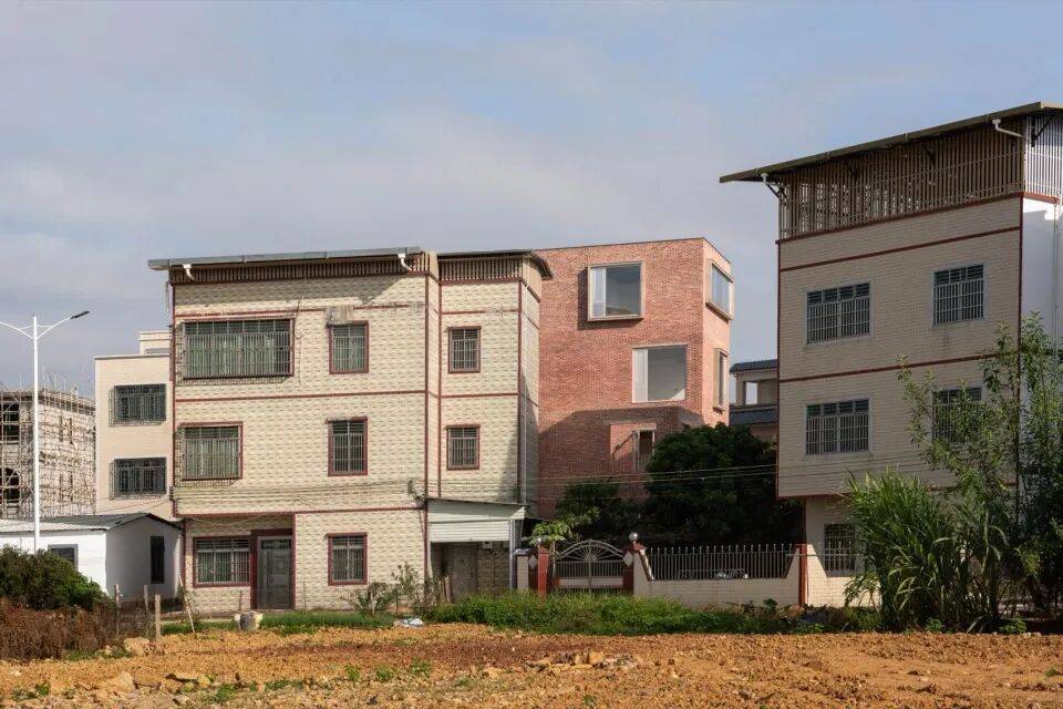 红砖和钢筋混凝土是当下村里自建房使用最广泛且相对经济的材料。设计团队延续了时下材料的使用,但希望呈现传统朴素建造所带来的美感和建造的可读性。建筑采用和相邻住宅一样的简单形体,通过建造材料的选择和对窗户洞口比例的控制,展现出独特的质感和气质。
