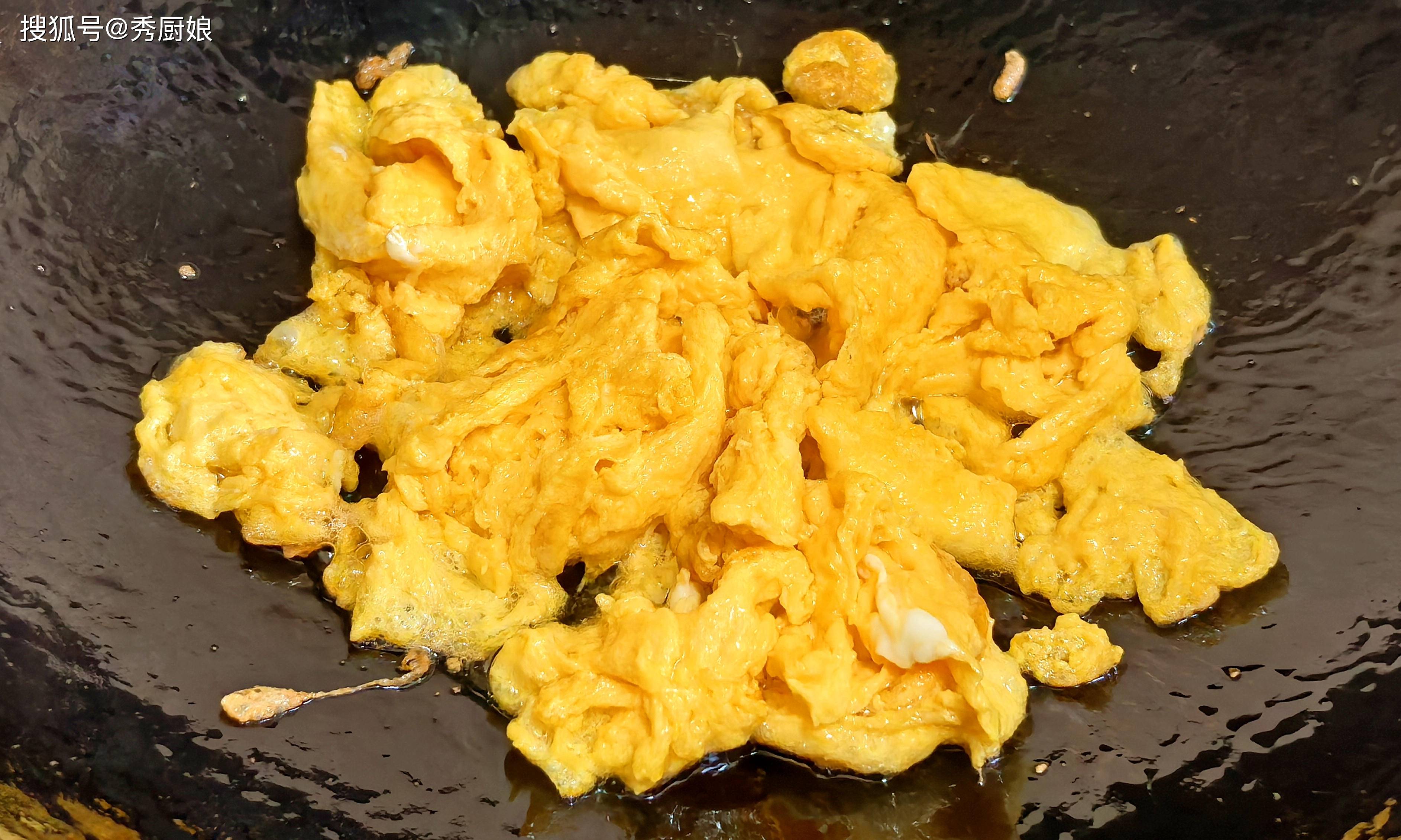 第二步:锅烧热,倒油,比平时炒菜稍微多一点点。油微微冒烟的时候,把打散的鸡蛋液倒进去。这时候别急着搅,等底面凝固定型了,用锅铲“咔嚓咔嚓”划拉几下,把鸡蛋划成不规则的块状。我喜欢炒得老一点,表面带点焦黄色,这样煮出来的汤更香。炒好先盛出来,搁一边儿。