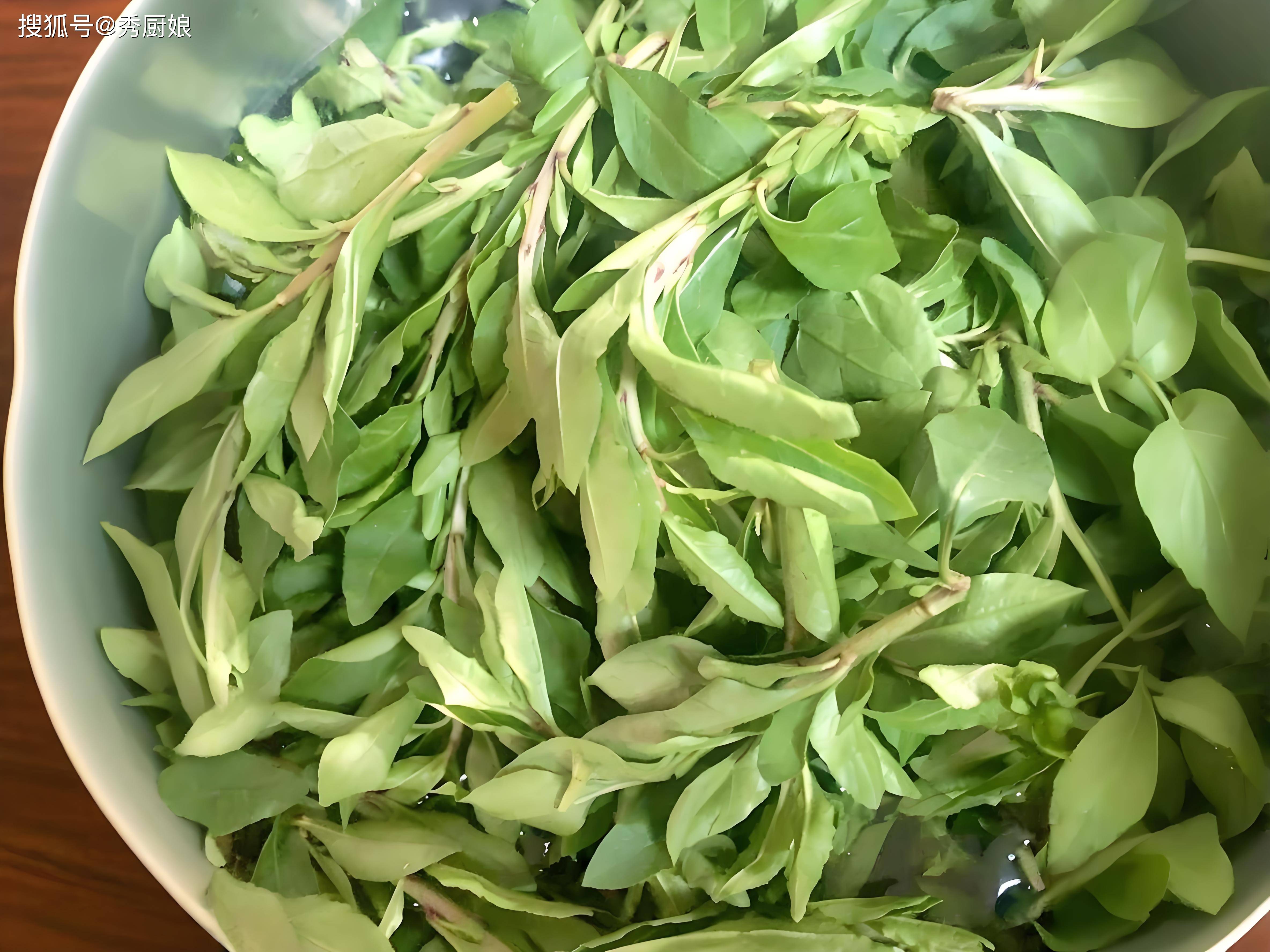 第一步:枸杞芽买回来,先把老梗掐掉,只留最上面那两三片嫩叶子。这个活别嫌麻烦,嫩的才好吃。掐好的叶子放进大盆里,加一勺盐,倒水泡上十分钟,再换水冲洗两遍,沥干水备用。枸杞芽长在野外,容易沾灰带虫卵,盐水泡一下吃着放心。