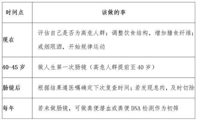 2. 筛查方法选择:肠镜是诊断肠癌的“金标准”,粪便或血液检测仅作为初筛,若结果异常,必须进行肠镜检查确诊。