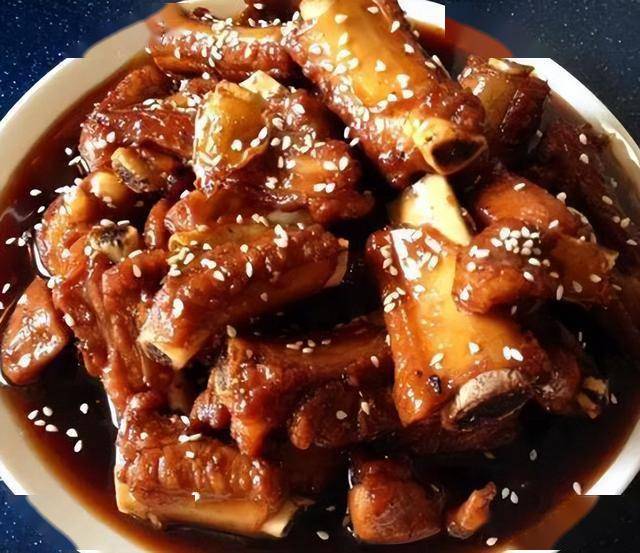 3、调配酱汁:按照1:2:3:4:5的比例调配,依次是:料酒,酱油,醋,糖,水。具体调配多少,依据排骨的量调配。只要能没过锅中的排骨就好。文火慢慢来就可以了,把汁收干就可以出锅啦。加点儿芝麻更香哦