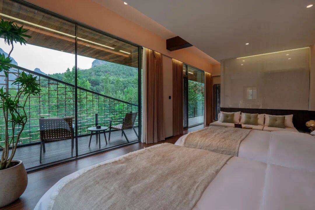 场地特征:坐拥直面太行群峰的无遮挡视野,设计采用U形布局,延续当地传统民居围合肌理,同时最大化景观利用 。