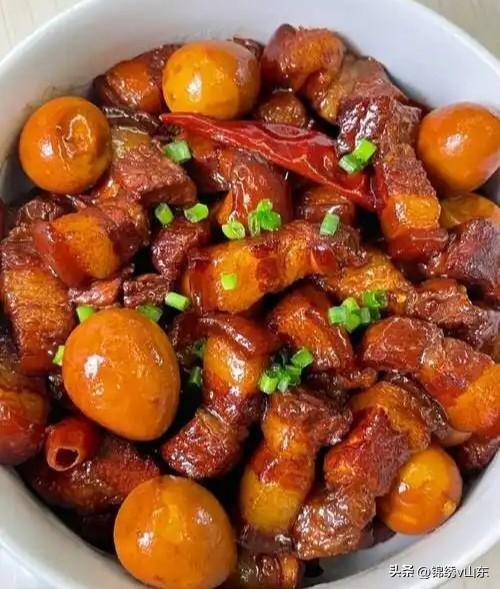6. 加鹌鹑蛋:放入剥好的鹌鹑蛋,继续焖煮30分钟,直到汤汁收至浓稠,肉块软烂,最后撒上葱花,香喷喷的红烧肉鹌鹑蛋就做好了!