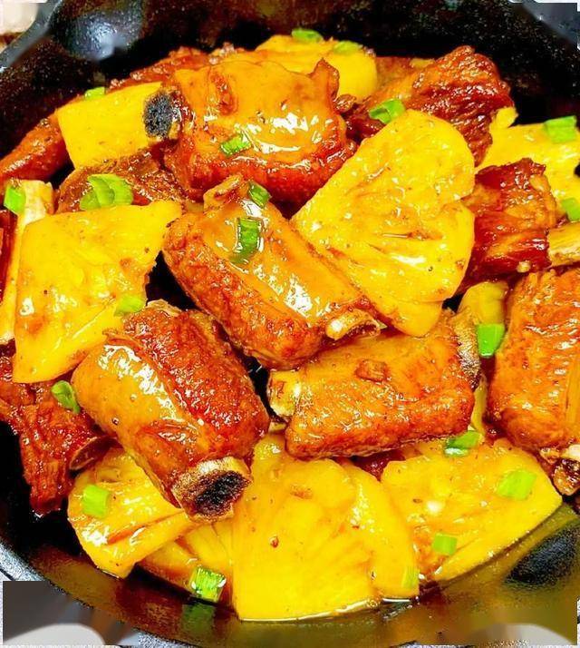 5. 快速翻拌出锅: 倒入菠萝块、青红椒片(切菱形块更好看),再倒入炸好的猪排,大火快速翻拌10秒,让每一块都裹上酱汁。千万别炒久了,菠萝会出水变酸,猪排外壳也会回软。装盘,趁热吃,外酥里嫩、酸甜爆汁!