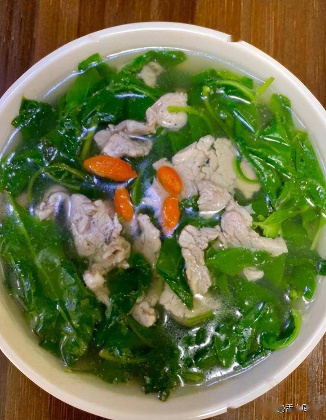 做法简单:水烧开后先下猪肝,滚2分钟再放入洗净的枸杞叶,加盐、胡椒粉调味,出锅淋香油即可。清香扑鼻,一碗胜过十瓶保健品。
