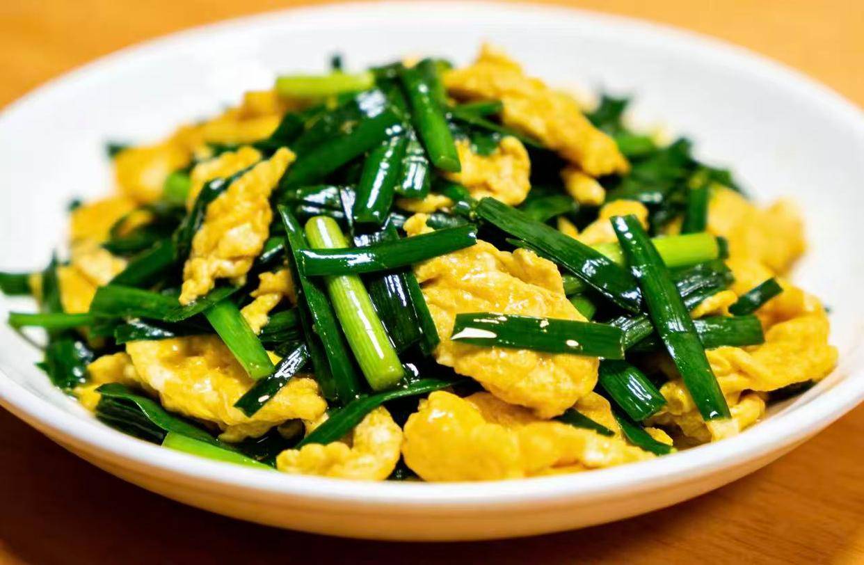 韭菜炒鸡蛋是最经典的家常搭配。将鸡蛋打散炒成嫩蛋花盛出,再放入韭菜大火快炒至变软,加入鸡蛋混合,放少许盐调味即可。韭菜鲜香,鸡蛋嫩滑,几分钟就能炒出一盘,下饭又开胃。无论是早餐配粥,还是正餐下饭,都非常合适,是春天餐桌上不可或缺的美味。