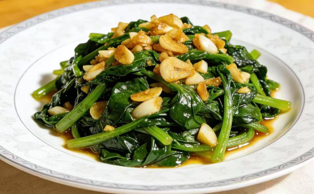 蒜蓉菠菜是一道简单又美味的家常菜。将菠菜洗净切段,在开水里加少许盐和油,把菠菜焯烫10秒后捞出,这样既能去除菠菜中的草酸,又能保持其翠绿的颜色。锅中放蒜末爆香,放入菠菜快速翻炒,加少许盐调味即可。简单清炒的菠菜,保留了本身的鲜甜,清淡解腻,吃起来毫无负担,仿佛把春天的清新都吃进了肚子里。