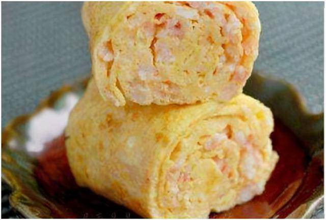 5、蛋液半凝结马上把刚才卷好的蛋饼在卷过去,重复上面的步骤,直到蛋液全部用完,卷起成厚蛋烧。关火在锅中稍微放一会儿定型,然后取出用刀切段装盘。