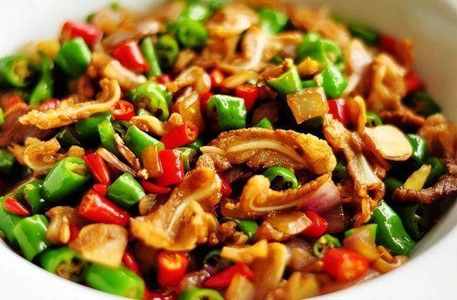 6、放入红干椒和葱花继续翻炒1分钟,这道开胃的家常菜就做出来了。