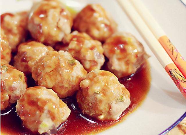 4、将蒸出的汤汁倒入炒锅中,调入蚝油和一点白糖,加少许水淀粉勾薄芡,浇在丸子上,即可(蒸出的汤汁比较少的话,再加点清水,蚝油本身就有咸鲜味,根据自己口味调整汤汁的味道)。