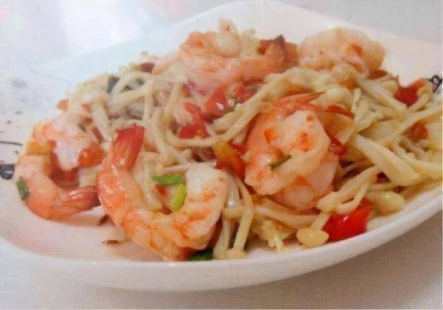 材料:海虾(已清洗)、金针菇(已清洗)、香葱