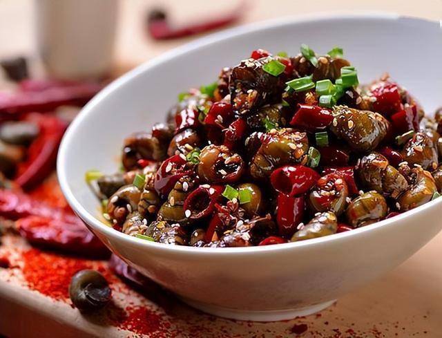 材料:田螺、干辣椒、花椒、豆瓣、泡姜、蒜、泡椒、植物油、料酒、味精、盐、白糖