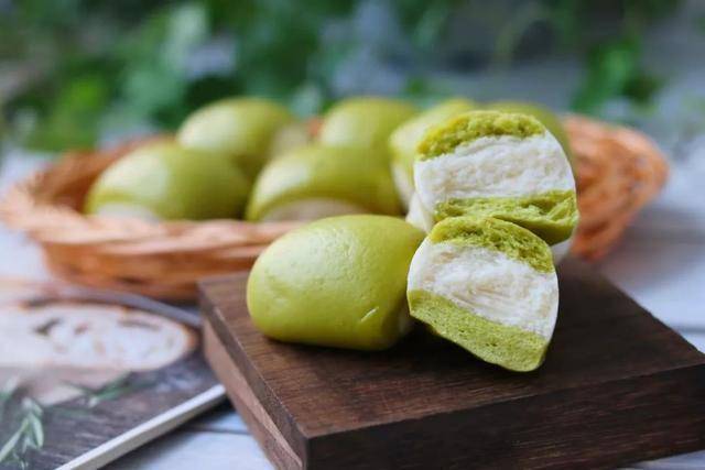 -材 料-菠菜面皮:中筋面粉250克,菠菜汁125克,酵母3克、白色面皮:中筋面粉160克,水80克,酵母2克