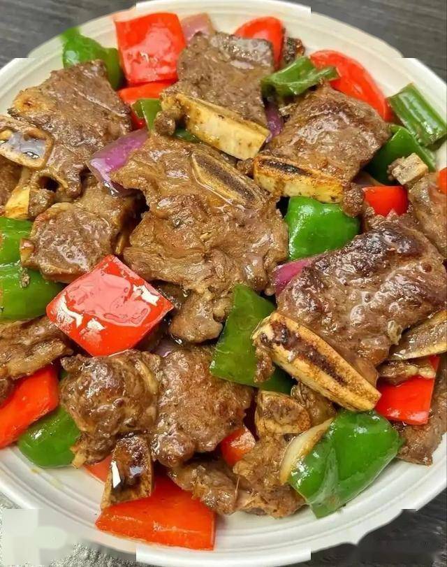 牛仔骨、青椒、红椒、洋葱、葱姜蒜、黑椒酱(或黑胡椒粉)、盐、食用油