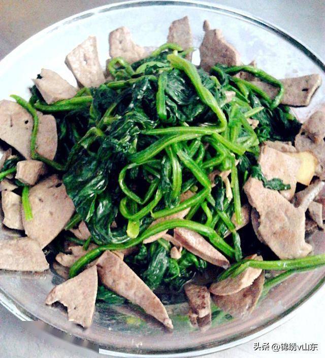 材料:菠菜、猪肝、姜、蒜、盐、料酒、生抽、淀粉。