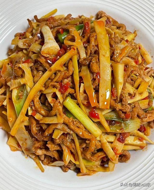 材料:春笋、猪肉、葱、姜、盐、料酒、生抽、淀粉。