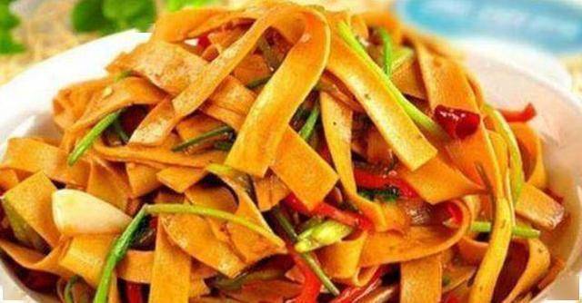 1、豆腐皮切丝,煮入水中煸炒备用,青椒切丝,葱,蒜切碎,胡萝卜切丝,胡萝卜切丝,胡萝卜丝几乎长段,瘦肉切丝,放入姜,葱,盐,生酱油,酒,胡椒粉,淀粉,拌匀。腌制10分钟;