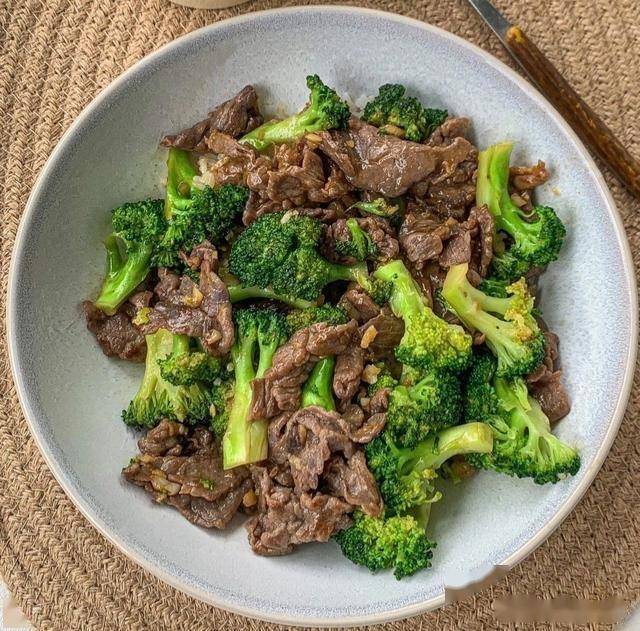 7. 根据口味调入适量盐,炒匀后即可出锅装盘,保持西蓝花翠绿和牛肉嫩滑。
