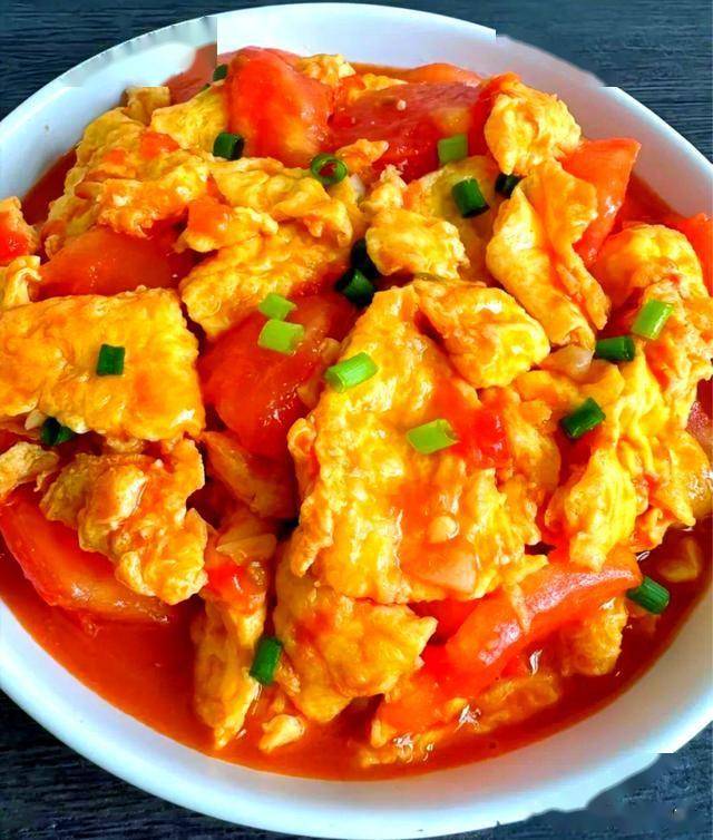3. 倒入炒好的鸡蛋,翻拌10秒让蛋液裹上番茄汁,撒葱花出锅!